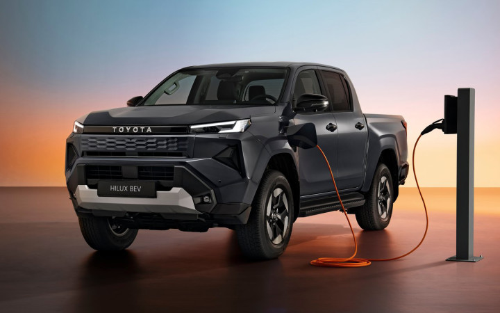 纯电动版本将提供双排驾驶室、四驱(4X4)驱动形式,且仅推出 SR5 及以上版本。新车搭载双电机和 59.2 千瓦时锂离子电池,前电机最大扭矩 20.9 公斤・米,后电机最大扭矩 27.38 公斤・米,最大装载重量 715 公斤,最大牵引重量 1600 公斤,WLTP 工况下的单次充电续航里程约为 240 公里。